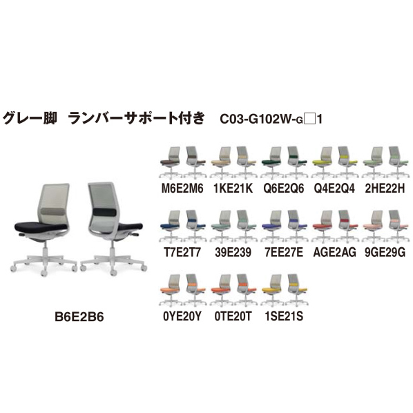- モネット(Monet) 背メッシュタイプ 肘なし グレー脚 本体色グレー 背グレー ランバーサポートあり C03-G102-G1