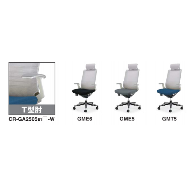 - インスパイン(INSPINE) 座面布張り ヘッドレスト付きタイプ T型肘 ホワイトフレーム CR-GA2505E1