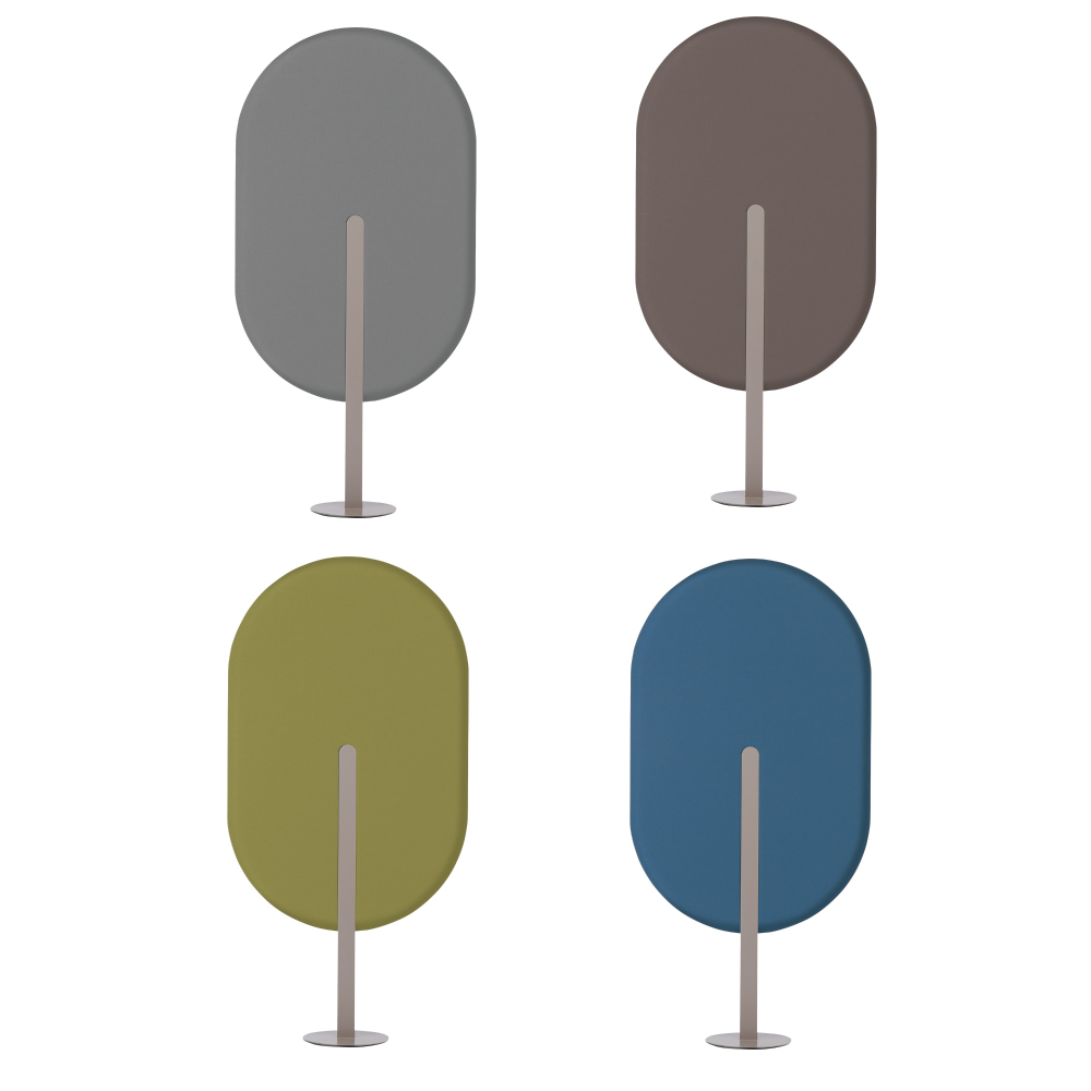 オープンミーティングの音に配慮したパネル。楽し気なデザインで会話弾むオフィス空間に。 隣り合うミーティングテーブルの間に設置した場合、吸音・遮音効果によって、パネルの反対側へ伝わる音圧を軽減します。 単体置きタイプは、音効果に影響の少ない足下に抜けを作ることで、軽快感を演出します。