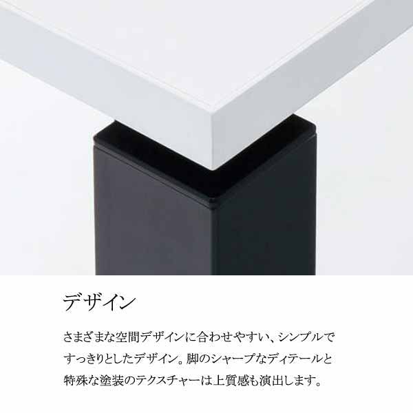 天板/表面材:メラミン化粧板、エッジ:樹脂押出材(ABS)、芯材:パーティクルボード、天板厚み:25mm フレーム/スチール角パイプ(□40、焼付塗装) 脚/支柱:スチール角パイプ(□45、焼付塗装) 脚ベース:アルミダイカスト(焼付塗装) アジャスター:樹脂(エラストマー) コードダクト/スチール(焼付塗装) 配線カバー/樹脂(ABS) ●床傾斜調整範囲/アジャスター脚:34mm